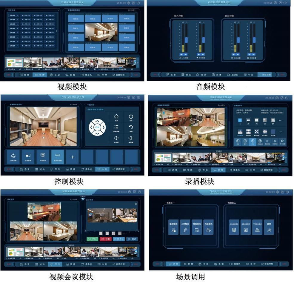录播综合一体机具备六大功能: 包含视频会议MCU、视频会议终端、录播导播、可编程中控、无缝混矩、音频控制,通过可视化综合管理平台将六大功能完美融合。主机以智能便捷操作为基础,用户体念为核心,提供B/S、C/S等多种可视化综合管理平台。采用ALL-IN-ONE的设计理念,具有安装简便,操作简、维护容易等优点,面对多系统应用场景,通过可视化综合管理平台实现互联互通,集中管控,为用户提供一体化解决方案。