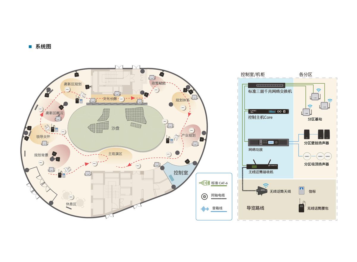 在非导览期间,固定安装的导览扩声扬声器还可接入到建筑内的背景音乐,广播与火灾报警系统中,成为整体背景音乐与广播系统的一部分,节省投资,避免重复建设。